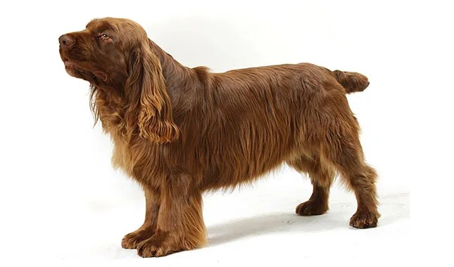 It is impossible not to include the Sussex Spaniel on account of those doleful eyes! Sporting a rich russet coat and short legs, this sweet, active and kind little man is the rarest of the land spaniels, bred to follow scents in dense undergrowth. This leaves him with a quirky talkativeness, alerting his master to his whereabouts as he burrows along. If you want a mellow family dog with a spaniel’s zest for life nonetheless, the Sussex Spaniel is a merry choice.