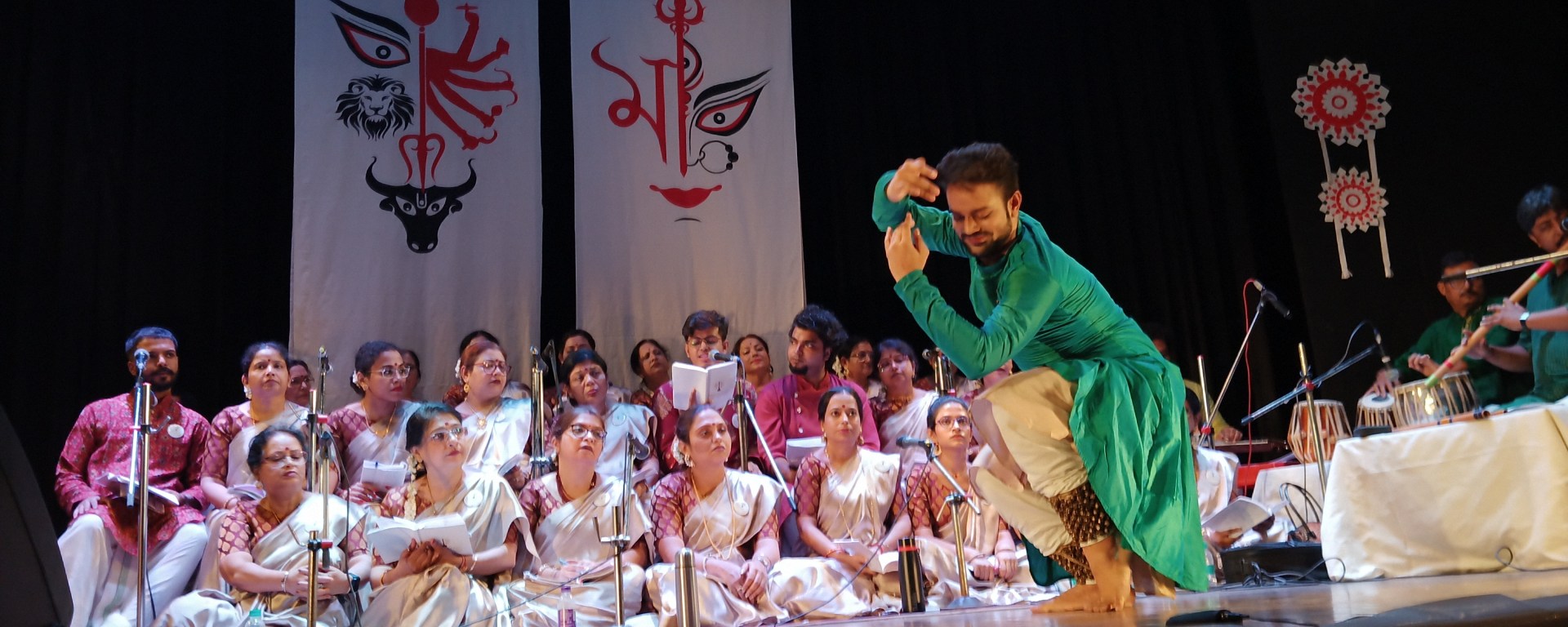 The entire narrative was meticulously conveyed through mellifluous lyrics interspersed with spirited and passionate verses penned by Tagore himself. Songs like “Chole esho ghore parabashi” (Come Home, Ye Relentless Wanderer), “Sunil Sagarer shyamal kinare” (I Met the Beauteous One on the Shores of the Azure Ocean), and “Koto baro bhebechinu” (I Often Mull a Total Surrender at Thy Feet) were performed, with some songs accompanied by dances from seasoned dancers. The romantic saga concluded on a poignant note, with Labanya penning a heartfelt poem to bid farewell to her beau, eponymous with the title of the novel. The presentation wrapped up with the soul-stirring melody “Tumi rabe nirobe” (Thou Shalt Linger on My Heart in Utmost Serenity).