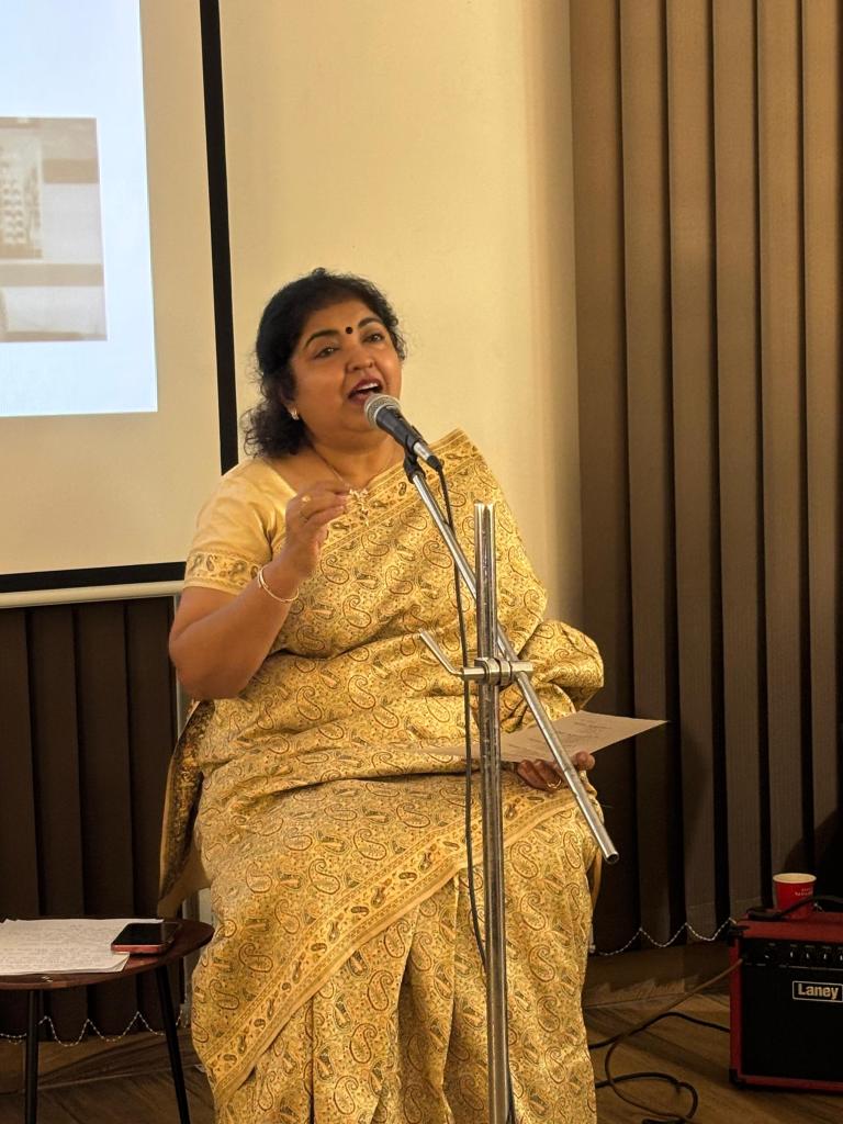 Her musical tastes are refreshingly eclectic, spanning legends like the late Rashid Khan, Shubha Mudgal, and Pandit Bhimsen Joshi to international icons like Donna Summer and Lionel Richie, as well as contemporary artists like Aditi Mohsin. Among her notable performances are recitals at Kolkata’s Rabindra Sadan, Rotary Club, and the Federation of Film Societies of India. In Delhi’s theatre and music circles, she is a familiar presence—most recently lending her voice to Taslima Nasreen’s Lajja in a stage adaptation late last year.