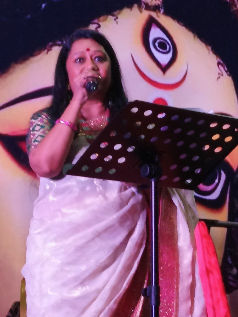 Her performances span the Bangladesh High Commission (New Delhi) and anchoring “Antakshari” with Annu Kapoor in Muscat. She has lent her voice to English and Hindi news voiceovers and worked with AIR and Doordarshan as a singer and show host. Today, she is a recognized singer and anchor at musical events and film festivals across Delhi-NCR.
