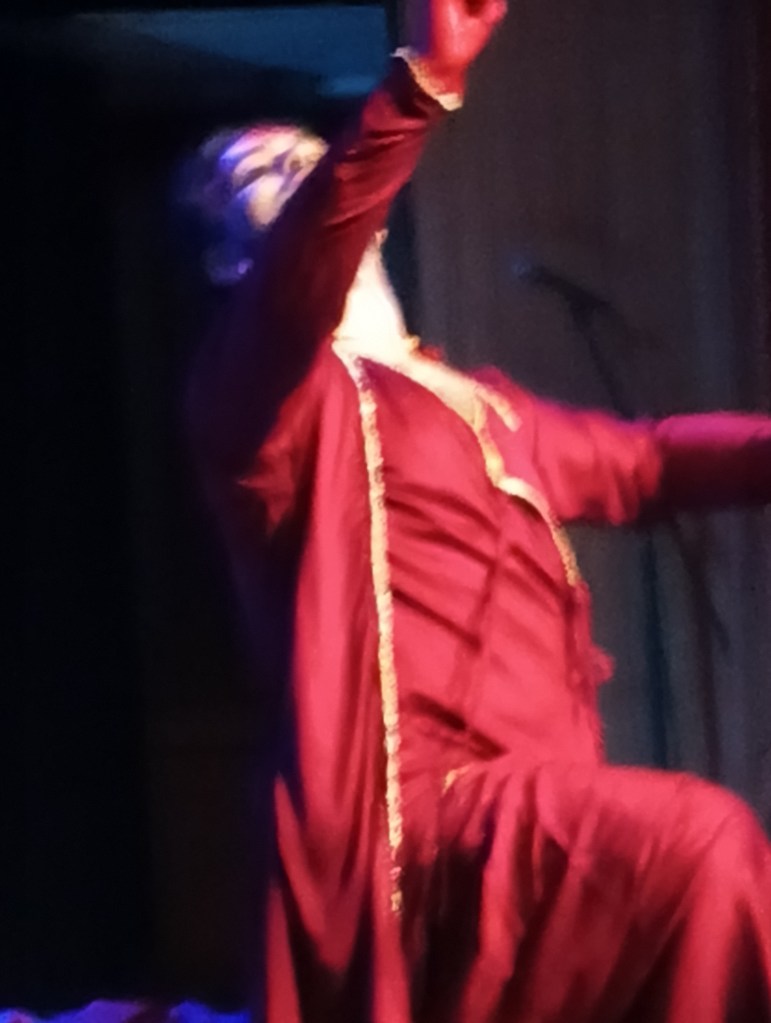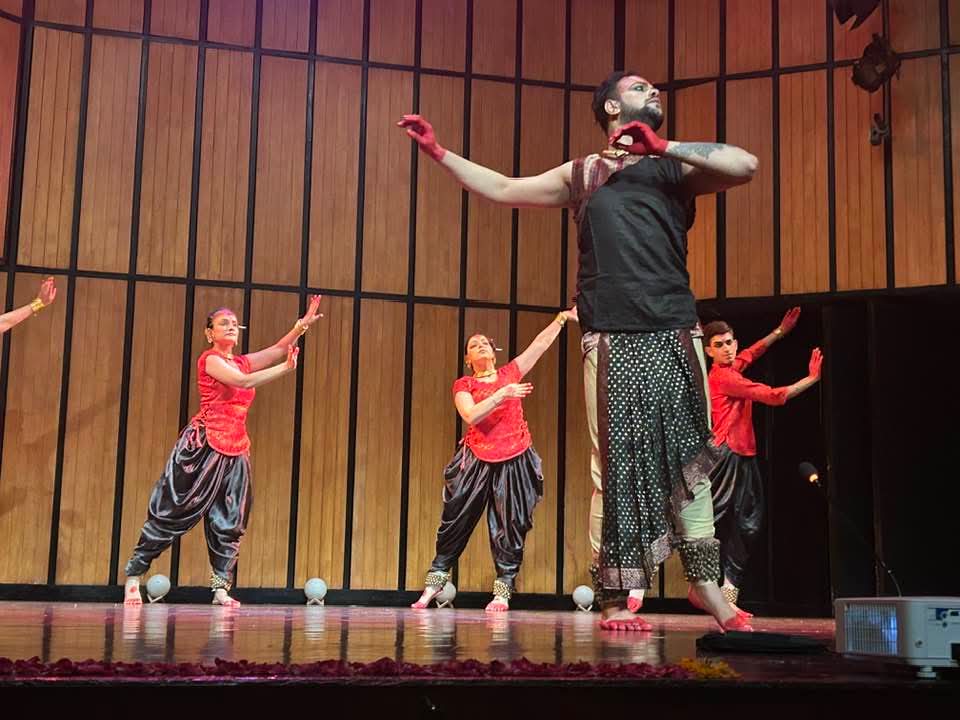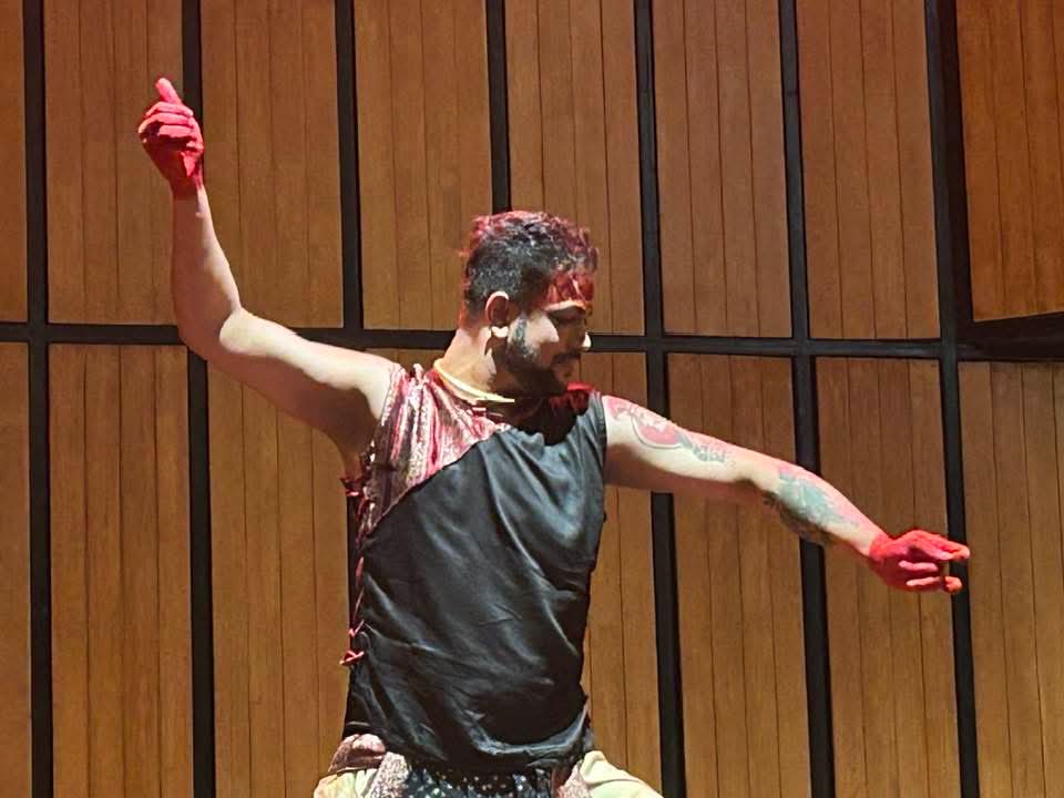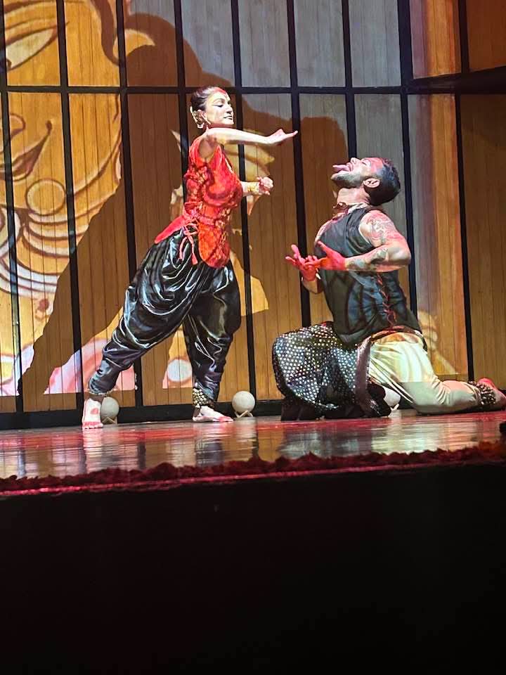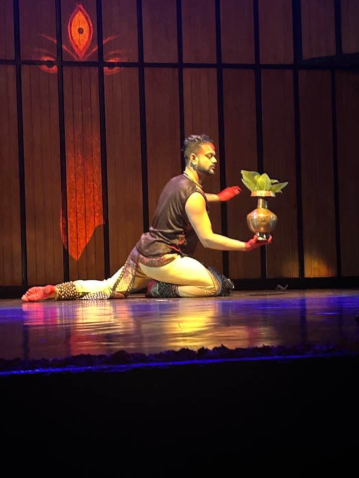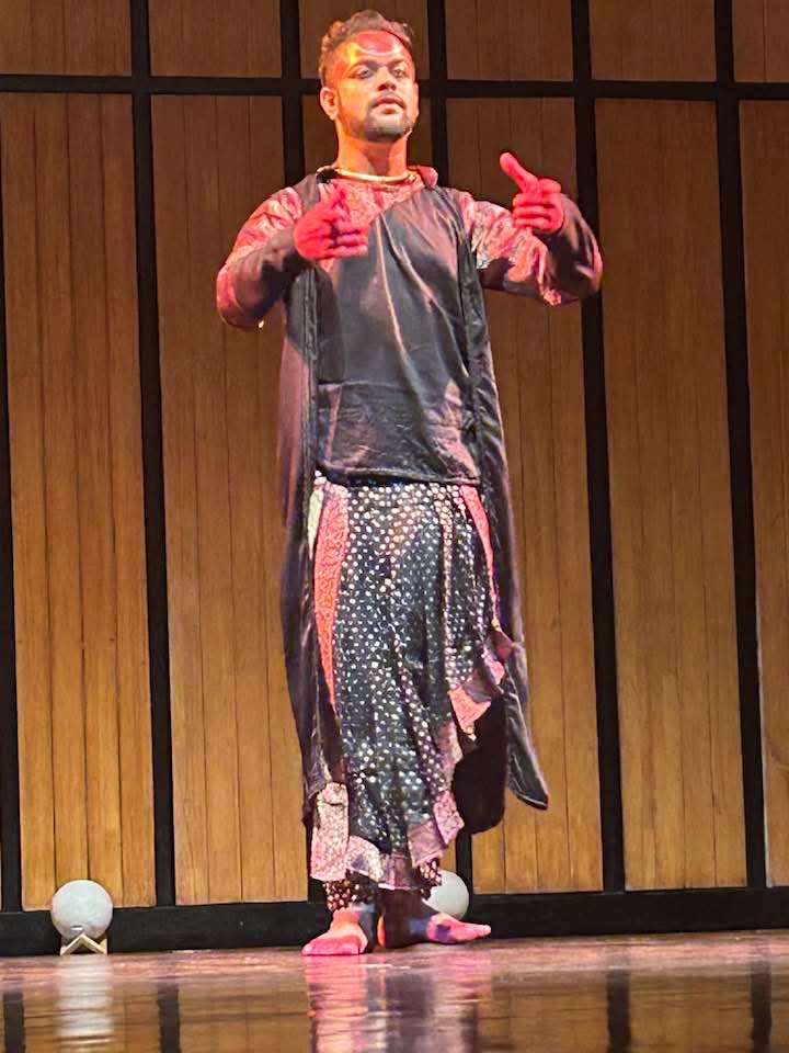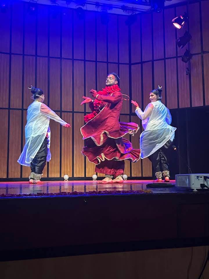 Even in his solo segments, Sudip was extraordinary—darting across the stage with whirls, shifting expressions, and bloodshot, kohl-lined eyes glaring, as if the devi herself had come alive. The piece began with Ragamalika and culminated in a full cycle of Kathak’s technical repertoire.