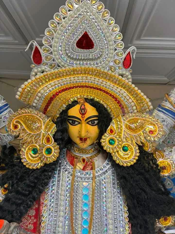 With the active support of my wife and other relatives, especially my elder brother Kamal, we began “Matri-Bandana” (ritual worship) at home in 1983. I obtained the clay for the idol from Kolkata, with additional clay sourced locally. It was clear that my initial attempts were clumsy, as I was a novice. However, “practice makes perfect.” Each year, my handiwork has improved, particularly since my daughter Sharbari, a talented artist herself, lends a helping hand.