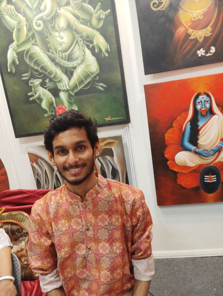 It was mind-blowing to view the works of Tushar Chanda (an alumnus of Jamia Millia), who is visibly obsessed with the fiery, ferocious, and awe-inspiring goddess Kali. That Kali dominates his psyche is abundantly evident from his works, which portray the Devi in her infinite moods.