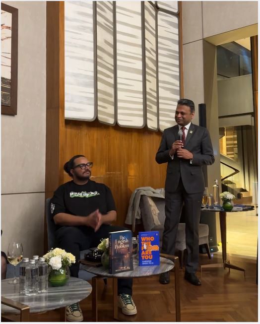 I wish to proclaim here with great pleasure that Aakriti belongs to my alma mater, City University of London. Unfortunately, Aakriti studied at the University’s Department of Journalism/Media Studies—the more literary, intellectual part of the University—and I studied at the more pragmatic, practical Bayes Business School. Hence, during our early stages of interaction, we decided that I would be the ‘hardcore’, ‘numbers’ part of the venture and Aakriti would bring in the aesthetics, intellectualism, or cultural flair. But pretty soon, Aakriti realized that I am totally hopeless with numbers. I promised then, when she asked me if I was good at anything, that I could organize good social gatherings like this literary evening, having studied Social Sciences for my doctorate. Although even here, all credit is due to Mr. Vinesh Gupta, General Manager of Hotel Den.