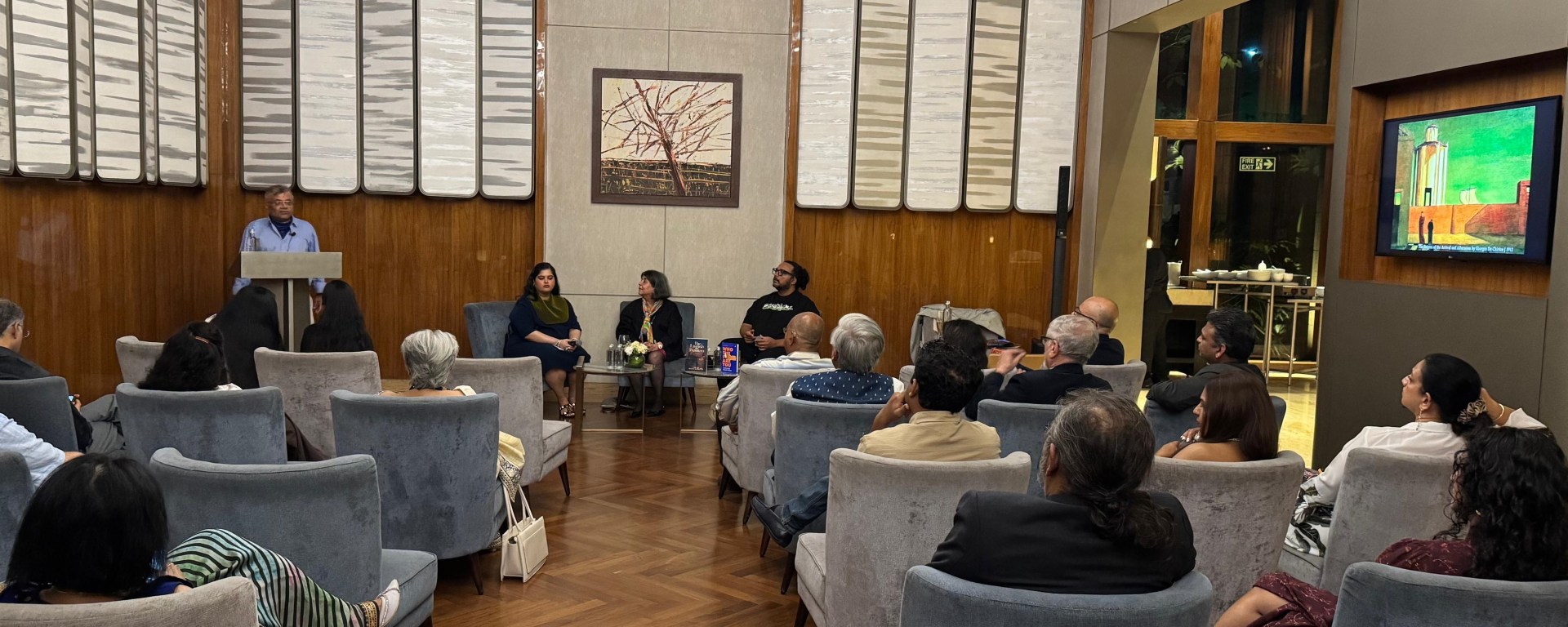 I wish to proclaim here with great pleasure that Aakriti belongs to my alma mater, City University of London. Unfortunately, Aakriti studied at the University’s Department of Journalism/Media Studies—the more literary, intellectual part of the University—and I studied at the more pragmatic, practical Bayes Business School. Hence, during our early stages of interaction, we decided that I would be the ‘hardcore’, ‘numbers’ part of the venture and Aakriti would bring in the aesthetics, intellectualism, or cultural flair. But pretty soon, Aakriti realized that I am totally hopeless with numbers. I promised then, when she asked me if I was good at anything, that I could organize good social gatherings like this literary evening, having studied Social Sciences for my doctorate. Although even here, all credit is due to Mr. Vinesh Gupta, General Manager of Hotel Den.
