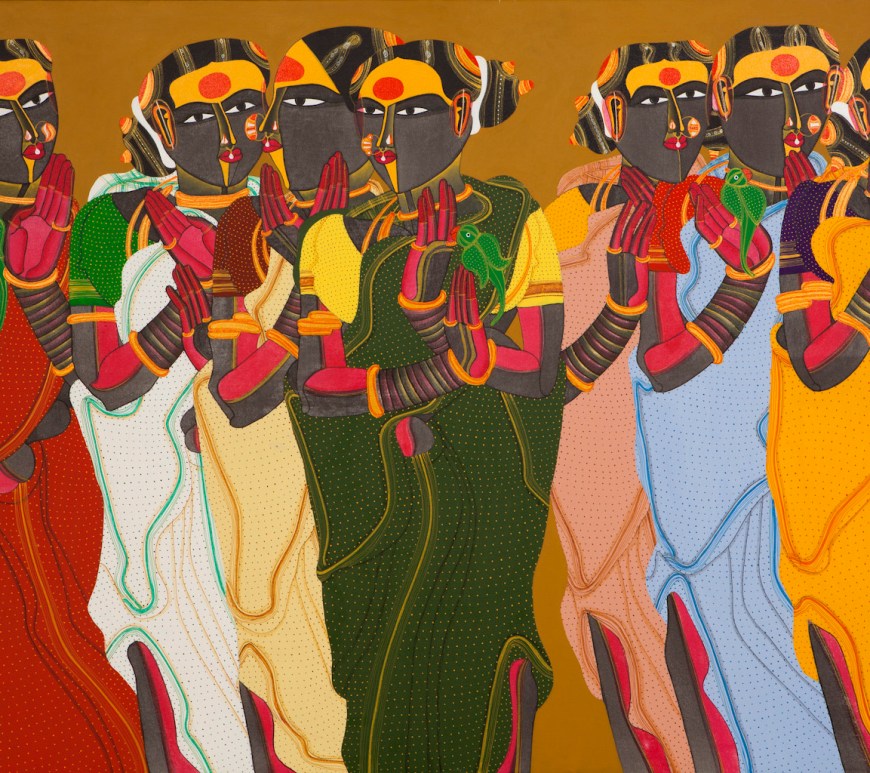 BY CSMI STAFF WRITER Thota Vaikuntam is known for his contemporary figurative paintings of residents of the Telangana region of India. His stylized portraits—which focus on their subjects’ garments and accessories—have earned him many awards, including the Bharat Bhavan Biennale Award in 1999 and the National Award for Painting from the Government of India in 1993. Vaikuntum trained at Maharaja Sayajirao University of Baroda under Indian modern art pioneer K.G. Subramanyan In … Continue reading Thota Vaikuntam